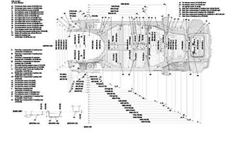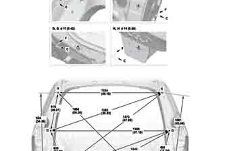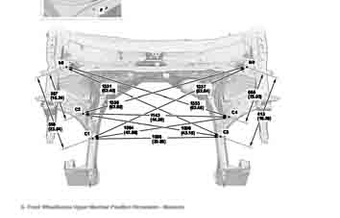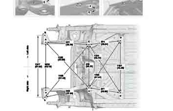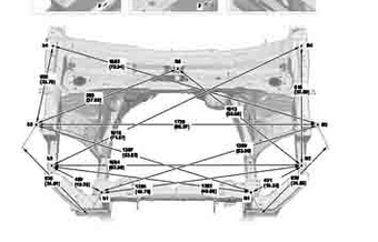 Контрольные кузовные размеры HONDA Pilot 2022-- из официального руководства по ремонту кузова. Содержат размеры верхней и нижней части кузова, в том числе размеры моторного отсека, диагональные размеры проемов кузова, размеры подрамников и контрольные точки для восстановления геометрии кузова. Даны значения допустимых зазоров кузовных панелей.