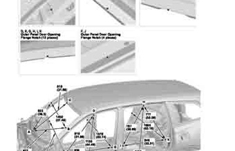 - Геометрические размеры кузова HONDA Pilot 2015-2022 как проекционные, так и непосредственного измерения, в том числе диагональные размеры проемов кузова и контрольные точки для восстановления геометрии кузова.