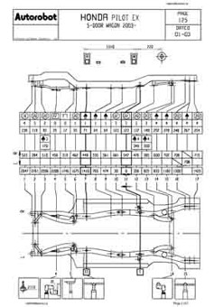 - Геометрические размеры кузова HONDA Pilot 2003-2008, как проекционные, так и непосредственного измерения, в том числе диагональные размеры проемов кузова и контрольные точки для восстановления геометрии кузова.