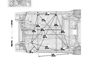 Контрольные кузовные размеры HONDA Insight 2018-2022 из официального руководства по ремонту кузова. Содержат размеры верхней и нижней части кузова, в том числе размеры моторного отсека, диагональные размеры проемов кузова, размеры подрамников и контрольные точки для восстановления геометрии кузова. Даны значения допустимых зазоров кузовных панелей.