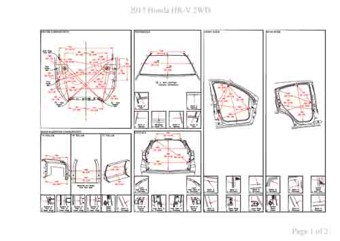 - Геометрические размеры кузова HONDA HR-V 2013-2018-2021, как проекционные, так и непосредственного измерения, в том числе диагональные размеры проемов кузова и контрольные точки для восстановления геометрии кузова.