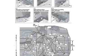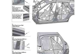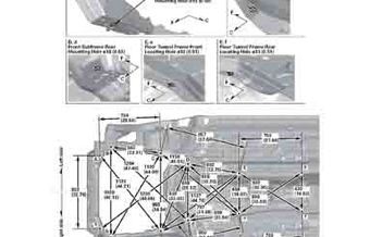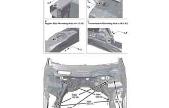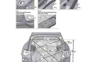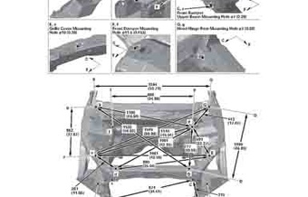 Контрольные кузовные размеры HONDA Crosstour 2009-2012-2015 из официального руководства по ремонту кузова. Содержат размеры верхней и нижней части кузова, в том числе размеры моторного отсека, диагональные размеры проемов кузова, размеры подрамников и контрольные точки для восстановления геометрии кузова. Даны значения допустимых зазоров кузовных панелей.