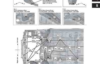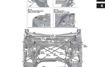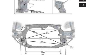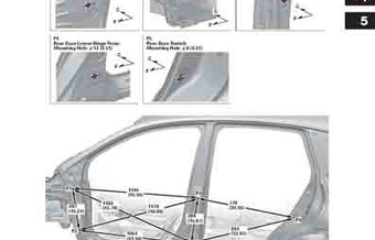 Контрольные кузовные размеры HONDA CR-V из официального руководства по ремонту кузова. Содержат размеры верхней и нижней части кузова, в том числе размеры моторного отсека, диагональные размеры проемов кузова, размеры подрамников и контрольные точки для восстановления геометрии кузова. Даны значения допустимых зазоров кузовных панелей.