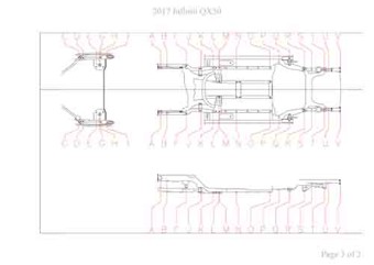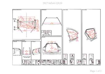 - Геометрические размеры кузова INFINITI QX30 2015-2019, как проекционные, так и непосредственного измерения, в том числе диагональные размеры проемов кузова и контрольные точки для восстановления геометрии кузова.