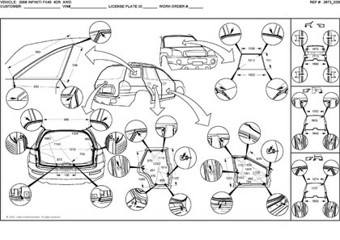 Контрольные кузовные размеры INFINITI FX35, FX45 (S50) 2003-2008: