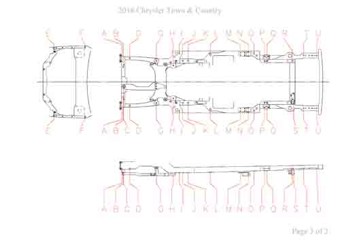 - Геометрические размеры кузова CHRYSLER Town & Country (RT) 2011-2016, как проекционные, так и непосредственного измерения, в том числе диагональные размеры проемов кузова и контрольные точки для восстановления геометрии кузова.