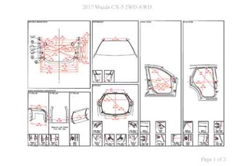 - Геометрические размеры кузова MAZDA CX-5 (KF) 2017-2025, как проекционные, так и непосредственного измерения, в том числе диагональные размеры проемов кузова и контрольные точки для восстановления геометрии кузова.