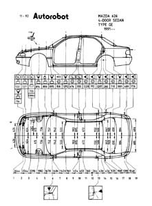 Контрольные кузовные размеры MAZDA 626 (GE) 1992–1997: