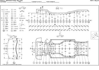- Проекционные геометрические размеры кузова Mazda 323 с привязкой к стапелю.