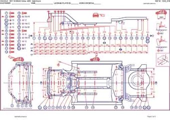 - Геометрические размеры кузова NISSAN Versa (C11) 2006-2009-2012, как проекционные, так и непосредственного измерения, в том числе диагональные размеры проемов кузова и контрольные точки для восстановления геометрии кузова.