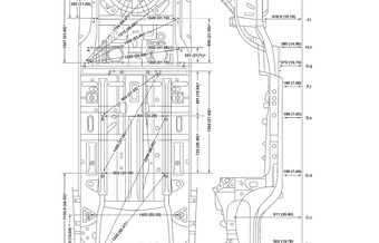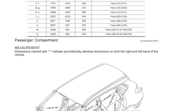 Контрольные кузовные размеры NISSAN Rogue (T32) 2013-2016-2020 из официального руководства по ремонту кузова. В том числе диагональные размеры проемов кузова и контрольные точки для восстановления геометрии кузова. Дополнительно приведены допустимые значения зазоров кузовных панелей.