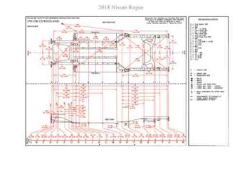 - Геометрические размеры кузова NISSAN Rogue (T32) 2013-2016-2020, как проекционные, так и непосредственного измерения, в том числе диагональные размеры проемов кузова и контрольные точки для восстановления геометрии кузова.