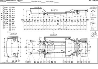 - Размеры кузова, как проекционные, так и непосредственного измерения, в том числе диагональные размеры проемов кузова.