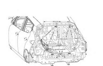 Контрольные кузовные размеры NISSAN Leaf (ZE1) 2018-- из официального руководства по ремонту кузова. В том числе диагональные размеры проемов кузова и контр ольные точки для восстановления геометрии кузова.