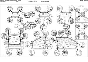 - Геометрические размеры кузова MINI Cooper Clubman (R55) 2007-2014, как проекционные, так и непосредственного измерения, в том числе диагональные размеры проемов кузова и контрольные точки для восстановления геометрии кузова.