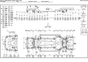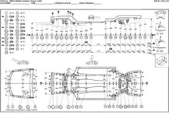 - Геометрические размеры кузова SUBARU Outback (BH) 1999-2003, как проекционные, так и непосредственного измерения, в том числе диагональные размеры проемов кузова и контрольные точки для восстановления геометрии кузова.