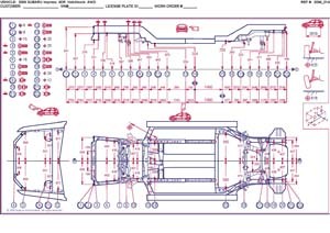 - Проекционные размеры SUBARU Impreza с привязкой к стапелю.
