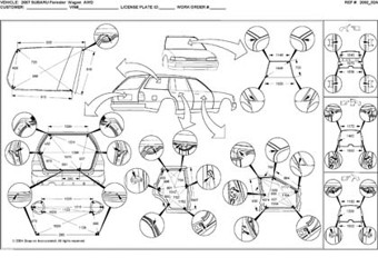 - Размеры кузова, как проекционные, так и непосредственного измерения, в том числе диагональные размеры проемов кузова.