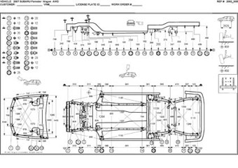 Контрольные кузовные размеры SUBARU Forester (SG) 2002-2008: