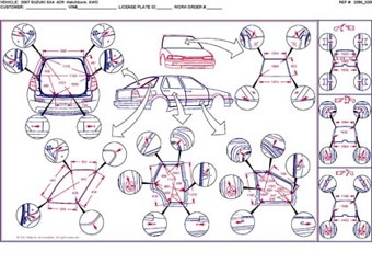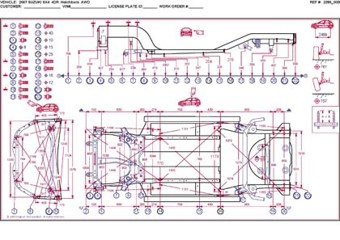 - Размеры кузова, как проекционные, так и непосредственного измерения, в том числе диагональные размеры проемов кузова.
