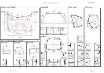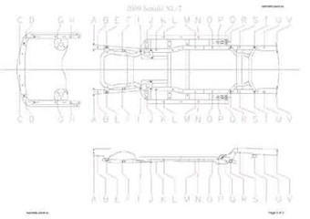 - Геометрические размеры кузова SUZUKI XL-7 2007-2009, как проекционные, так и непосредственного измерения, в том числе диагональные размеры проемов кузова и контрольные точки для восстановления геометрии кузова.