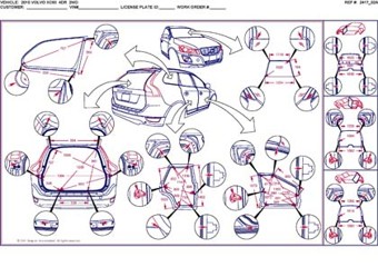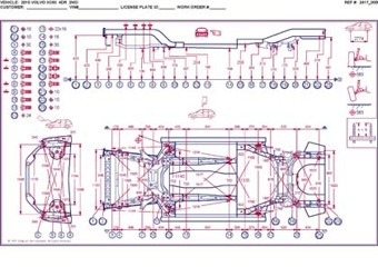 - Геометрические размеры кузова, как проекционные, так и непосредственного измерения, в том числе диагональные размеры проемов кузова и контрольные точки для восстановления геометрии.