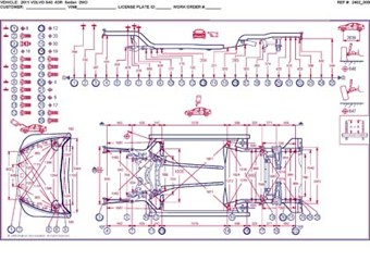 - Геометрические размеры кузова VOLVO S40 2004-2012, как проекционные, так и непосредственного измерения, в том числе диагональные размеры проемов кузова и контрольные точки для восстановления геометрии.