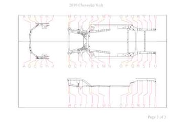 - Геометрические размеры кузова CHEVROLET Volt 2015-2019, как проекционные, так и непосредственного измерения, в том числе диагональные размеры проемов кузова и контрольные точки для восстановления геометрии кузова.