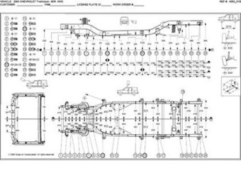 - Проекционные геометрические размеры кузова с привязкой к стапелю.