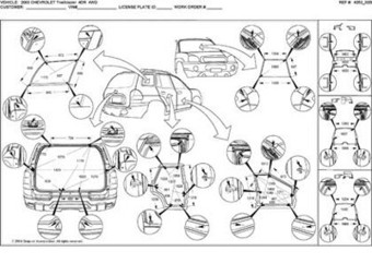 -Геометрические размеры CHEVROLET TrailBlazer, как проекционные, так и непосредственного измерения, в том числе диагональные размеры проемов кузова и контрольные точки для восстановления геометрии.