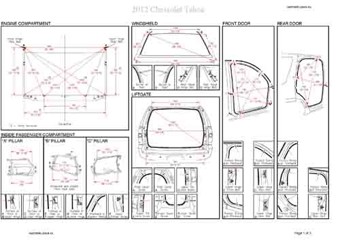 - Проекционные геометрические размеры кузова CHEVROLET Tahoe 2006-2014 с привязкой к стапелю. Дополнительно приведены цветные фотографии мест расположения контрольных точек на реальном автомобиле.