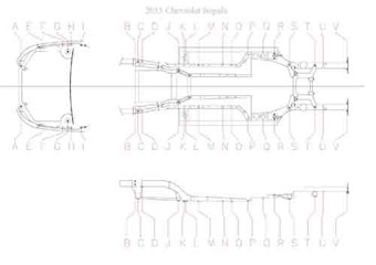 - Геометрические размеры кузова CHEVROLET Impala 2013-2020, как проекционные, так и непосредственного измерения, в том числе диагональные размеры проемов кузова и контрольные точки для восстановления геометрии кузова.