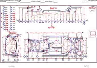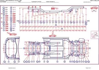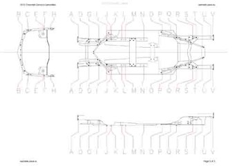 - Геометрические размеры кузова CHEVROLET Camaro 2009-2013-2015, как проекционные, так и непосредственного измерения, в том числе диагональные размеры проемов кузова и контрольные точки для восстановления геометрии кузова.
