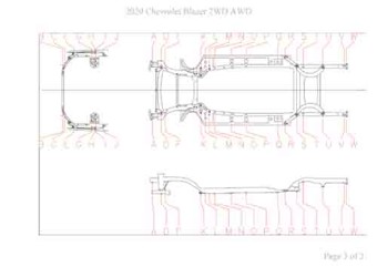 Контрольные кузовные размеры из официального руководства по ремонту кузова CHEVROLET Blazer 2019--, в том числе диагональные размеры проемов кузова. Обратите внимание: информация довольно скудна. В галерее представлены ВСЕ имеющиеся чертежи.