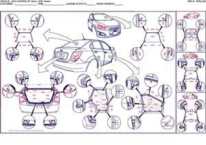- Геометрические размеры кузова Chevrolet Sonic для автомобилей американского рынка, как проекционные, так и непосредственного измерения, в том числе диагональные размеры проемов кузова и контрольные точки для восстановления геометрии кузова.