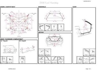 - Геометрические размеры кузова FORD Mustang 2003-2009, как проекционные, так и непосредственного измерения, в том числе диагональные размеры проемов кузова и контрольные точки для восстановления геометрии кузова.