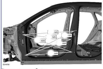 Контрольные кузовные размеры из заводского руководства по ремонту кузова FORD Kuga 2019-2024-, в том числе размеры проемов. Обратите внимание на миниатюры - изготовитель предоставил не очень полные данные по размерам.
