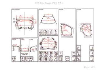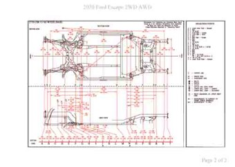 - Геометрические размеры кузова FORD Escape, Escape Hybrid 2019--, как проекционные, так и непосредственного измерения, в том числе диагональные размеры проемов кузова и контрольные точки для восстановления геометрии кузова.