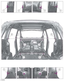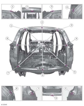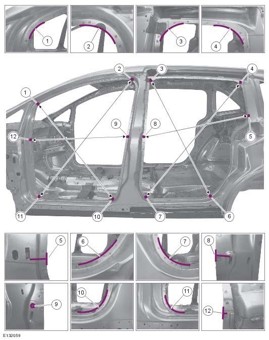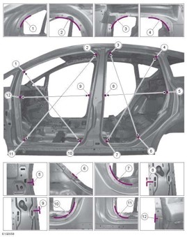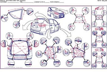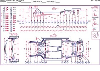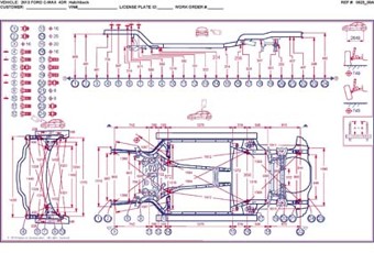 - Из заводского руководства по ремонту кузова Ford C-Max, C-MAX Grand, в том числе диагональные размеры проемов и контрольные точки для восстановления геометрии.