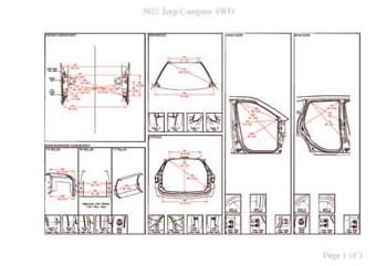 - Геометрические размеры кузова JEEP Compass (MP) 2016-2025, как проекционные, так и непосредственного измерения, в том числе диагональные размеры проемов кузова и контрольные точки для восстановления геометрии кузова.