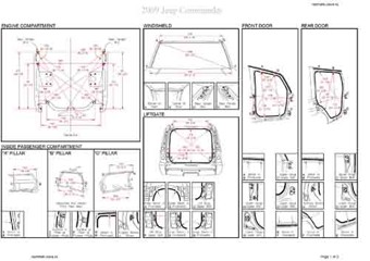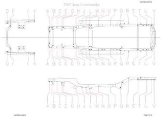 - Геометрические размеры кузова JEEP Commander (XK) 2005-2010, как проекционные, так и непосредственного измерения, в том числе диагональные размеры проемов кузова и контрольные точки для восстановления геометрии кузова.