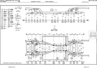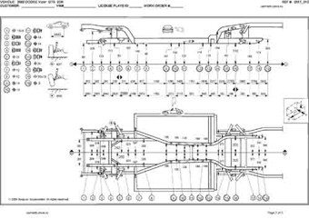 Геометрические размеры кузова DODGE Viper 2000-2010, как проекционные, так и непосредственного измерения, в том числе диагональные размеры моторного отсека, проемов кузова и контрольные точки для восстановления геометрии.