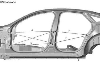 Контрольные кузовные размеры JAGUAR XJ (X351) 2009-2019 из официального руководства по ремонту кузова. В том числе диагональные размеры проемов кузова и контрольные точки для восстановления геометрии кузова. Дополнительно приведены допустимые значения зазоров кузовных панелей.