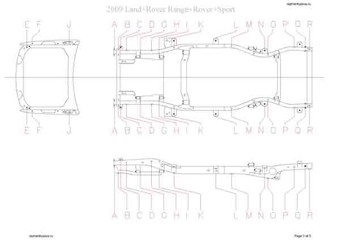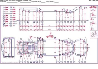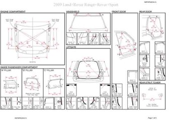 - Геометрические размеры кузова LAND ROVER Range Rover Sport 2005-2013, как проекционные, так и непосредственного измерения, в том числе диагональные размеры проемов кузова и контрольные точки для восстановления геометрии.