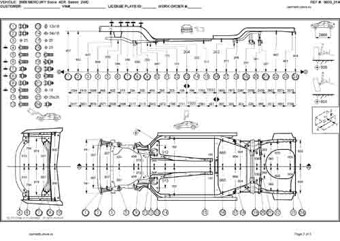 - Геометрические размеры кузова MERCURY Sable 2007-2009, как проекционные, так и непосредственного измерения, в том числе диагональные размеры проемов кузова и контрольные точки для восстановления геометрии кузова.