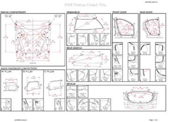 - Геометрические размеры кузова PONTIAC Grand Prix 2003-2008, как проекционные, так и непосредственного измерения, в том числе диагональные размеры проемов кузова и контрольные точки для восстановления геометрии кузова.