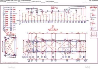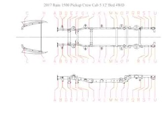 - Геометрические размеры кузова RAM 1500 (DS) 2008--, как проекционные, так и непосредственного измерения, в том числе диагональные размеры проемов кузова и контрольные точки для восстановления геометрии кузова.