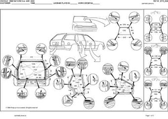 - Геометрические размеры кузова SATURN VUE 2001-2005-2007, как проекционные, так и непосредственного измерения, в том числе диагональные размеры проемов кузова и контрольные точки для восстановления геометрии кузова.