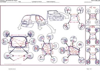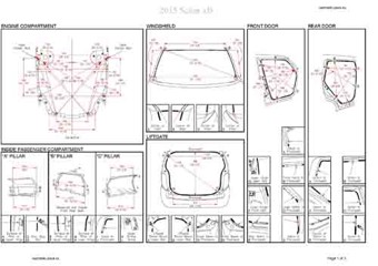 - Геометрические размеры кузова SCION xB 2007-2010-2015, как проекционные, так и непосредственного измерения, в том числе диагональные размеры проемов кузова и контрольные точки для восстановления геометрии кузова.