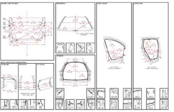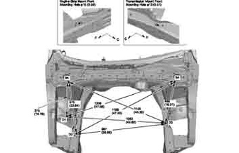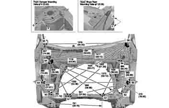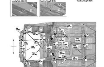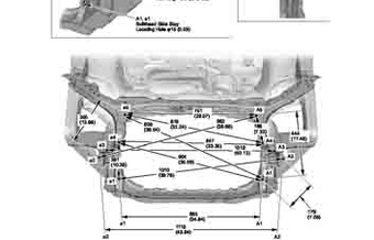 Контрольные кузовные размеры ACURA RDX 2013-2018 (13-15MY, 16-MY) из официального руководства по ремонту кузова. Содержат размеры верхней и нижней части кузова, в том числе размеры моторного отсека, диагональные размеры проемов кузова, размеры подрамников и контрольные точки для восстановления геометрии кузова. Даны значения допустимых зазоров кузовных панелей.